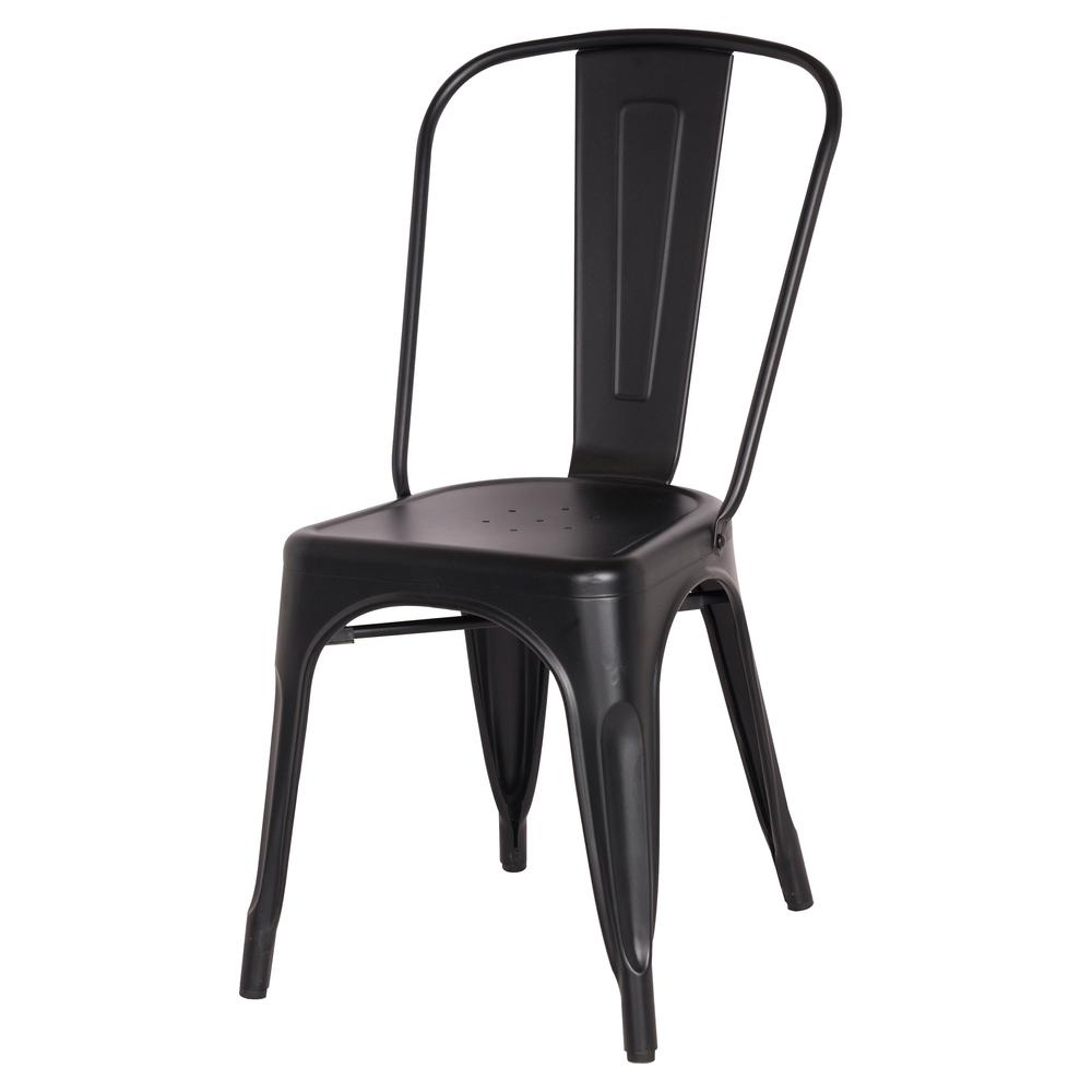 This classic cafe chair makes up the first half of a fabulous dining room! This distinctive bistro chair has a great look and painted finish, so youÕll be able to create the feeling of a downtown brew-pub or favorite hang-out. Pair it with the matching Metropolis Dining Table and youÕre ready to host your friends and have a blast! Fully Assembled, available in other color options, set of 4, and stackable.