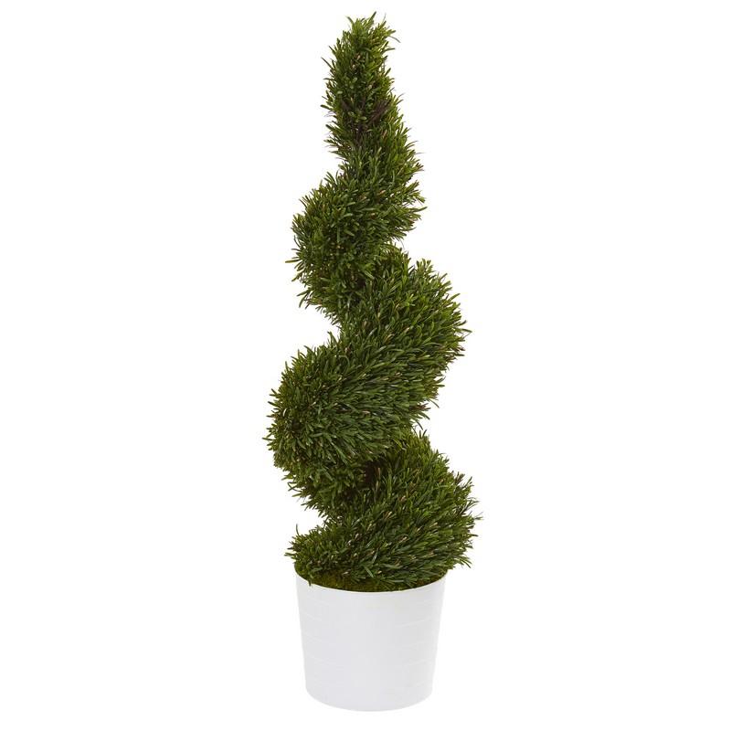 50" Rosemary Spiral Topiary Artificial Tree in White Planter (Indoor/Outdoor)
