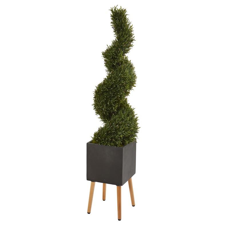 64" Rosemary Spiral Topiary Artificial Tree in Black Planter with Stand (Indoor/Outdoor)