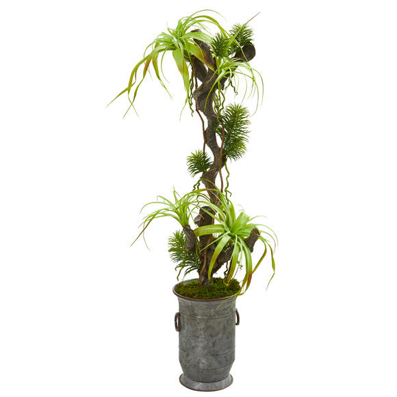 Nearly Natural 47" Tillandsia Artificial Plant in Vintage Metal Planter