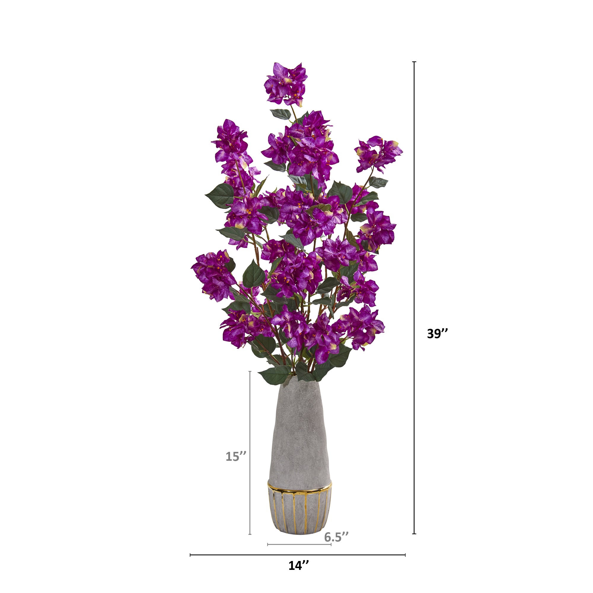 Transport yourself (and guests!) to the Mediterranean coast with this artificial arrangement boasting an overgrowth of flirty bougainvillea blooms in bright, vivid hues, handsomely complemented with dark, realistic leaves peeking out. Sitting 39" tall from a stoneware vase, this silk arrangement evokes hints of femininity wherever displayed.