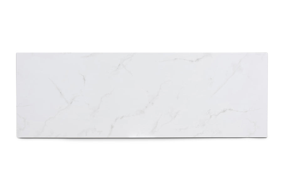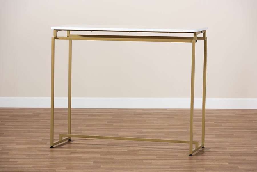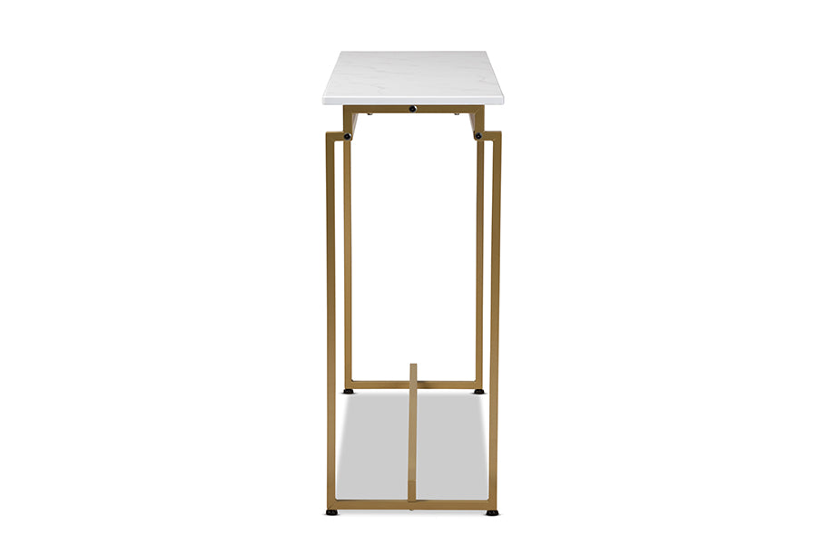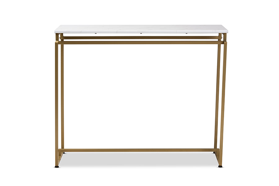 Baxton Studio Renzo Modern and Contemporary Brushed Gold Finished Metal Console Table with Faux Marble Tabletop