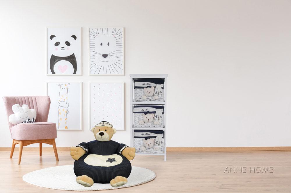 Your kids will love to cuddle up in this Navy Bear Chair! Adorable and plush, the Navy Bear Chair is sure to be a favorite spot for your little one to sit in! The bear backrest is soft to the touch and the bean’s bag seating area is comfortable to sit. The chair is about 21 inches high. The actual seat portion is approximately 12 inches from the back to the front and 20 inches from arm to arm. This Bear Chair will surely add another level of charm and fun to your kid’s playroom and even the entire house!
