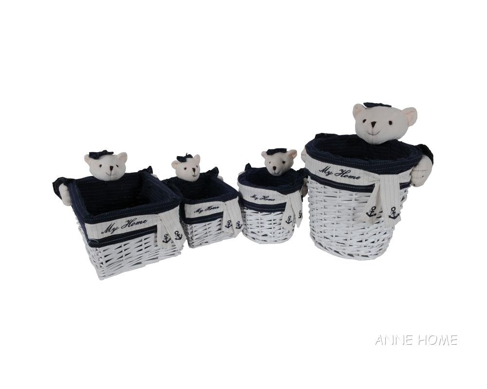 Anne Home - Set of 5 Rectangular Willow Baskets Bear Design
