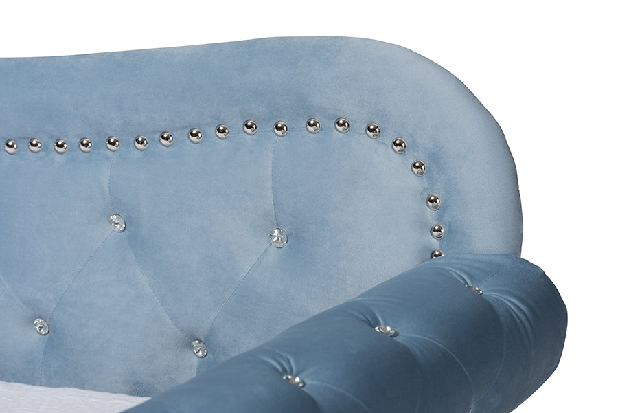 Baxton Studio Abbie Traditional and Transitional Light Blue Velvet Fabric Upholstered and Crystal Tufted Twin Size Daybed with Trundle
