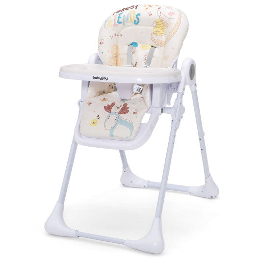 Baby High Chair Folding Feeding Chair with Multiple Recline and Height Positions-Beige