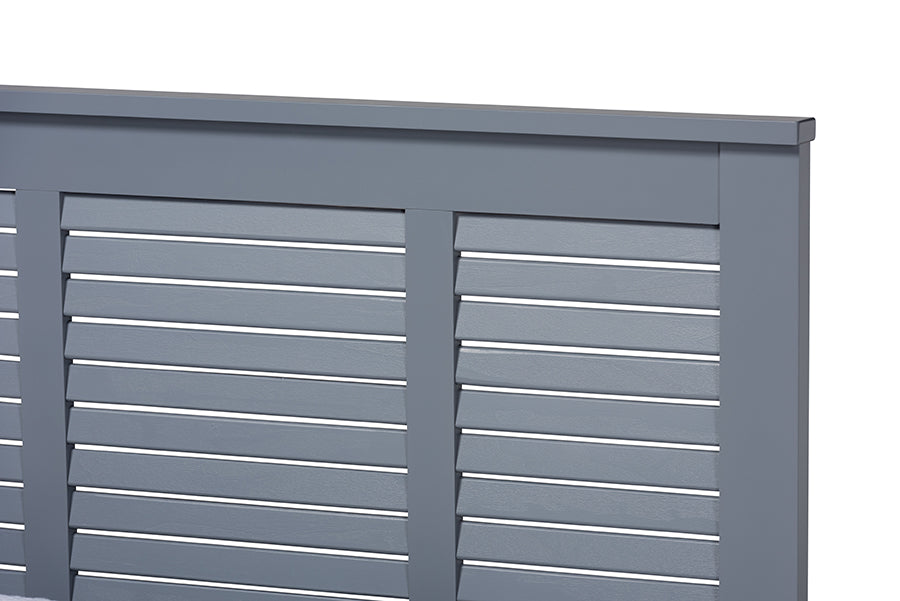 Create a charming beach-inspired retreat in your bedroom with the Adela bed. Crafted from wood, the Adela displays a modern Grey finish. The shutter design on the headboard lends a relaxed feel, while inset detailing at the footboard adds a touch of refinement. Tapered legs complete the look. The Adela bed is made in Malaysia and requires assembly.