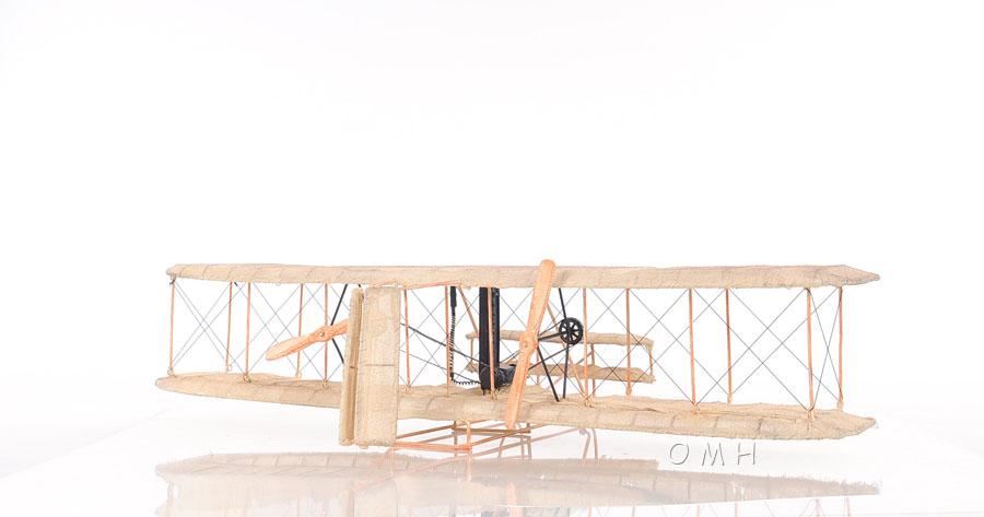 The Wright Brothers Flyer was the first successful heavier-than-air powered aircraft, designed and built by the Wright brothers. This airplane model is 100% metal wired frame covered in fabric. The propellers also spin to add authenticity and bring life to the plane. When shipped, the item is packaged with foam inserts banded to pieces of cardboard to keep them held sturdily in place. • 100% metal wired frame covered with a burlap fabric • Wood propeller • Wheels roll • Propeller spins • Metal plane details are securely welded on