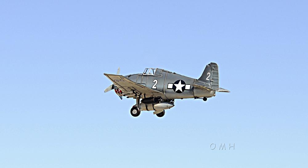 The classic Grumman F6F Hellcat fighter was known to make an Ace out of the many pilots who flew it during World War II. This replica model is handcrafted in iron frame on a scale of 1:40. The model comes with remarkable details such as front rotor blade, wings, cockpit, and landing wheels. They are beautifully painted with the authentic WWII paint and symbols. A must have for the collector and enthusiast! • 100% iron frame • Metal wheels • Metal propeller • Wheels roll • Decaled insignia