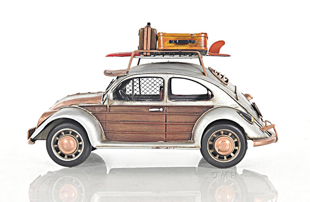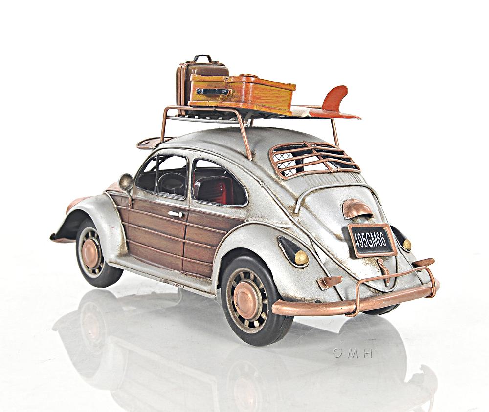 Travel back in time with this classic Volkswagen Beetle model also known as “The People Car”. It was named the world's most influential car in the 20th century in 1999 Car of the Century competition. It is made of iron and has a scale of 1:15. It features many intricate details such as fenders, wheels, front bumper, windshield wipers, license plate, roof rack, and luggage. A perfect gift to display in your home or office for the Bug’s lover! • 100% iron frame • Metal wheels • Wheels roll • Includes seats, steering wheel, and small details on dash • Exterior details such as roof rack and luggage are securely welded on