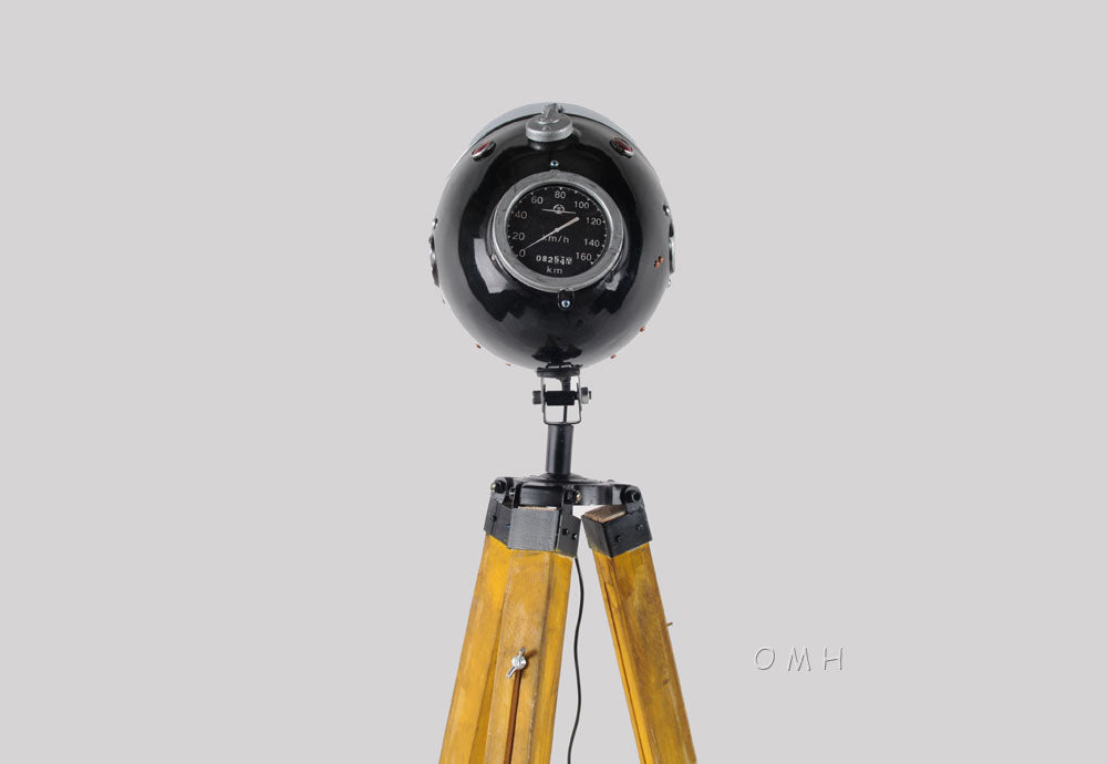 This lamp sure is a new one for any home. Great for all motorcycle enthusiast. If you did not recognize it, the lamp itself is the headlight of a motorcycle. It is the headlight from a Jawa CZ motorcycle. Jawa Moto is a Czechoslovakian motorcycle and moped manufacturer founded in Prague, Czechoslovakia in 1929 by František Janecek, who also bought the motorcycle division of Wanderer. The name JAWA is from the first two letters of Janecek and Wanderer. In the 1950s, JAWA was one of the top motorcycle manufacturers in the world. They exported their Pérák model to over 120 countries. The tripod stand is made out of wood. The height of the tripod can be adjusted by the wing nuts on each of the legs. The lamp can extend to be as high as 54 inches but sits around 30 inches at its shortest. This lamp comes with the stand, the light, and the wire. The lamp needs assembly but it is very straightforward. Set up the stand and attach the light with the included nuts. Plug in the light using the adapter and then there will be light wherever its aimed. Just a couple of tightening here and there and it's set to light up a room.
