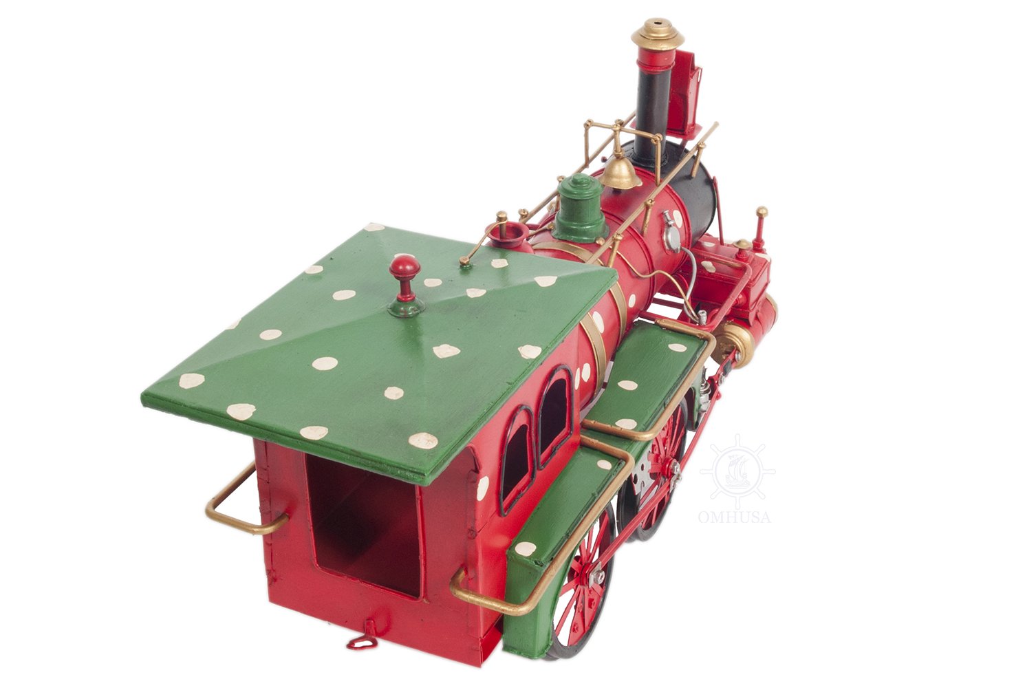 For many Americans, model trains evoked sentimental feelings similar to the other emotions associated with Christmas. Christmas was a time when many people traveled long distances to reach home or to see relatives. Most of these journeys would involve a train ride. Likewise, the nation's railroads were a primary means of transporting packages around the country at Christmas time. Our Christmas Train Model is beautifully handmade out of tin and painted in red. It features many intricate details such as rolling spoke wheels, chimney, chain, belt, detachable caboose, engine, headlights, fuel tank, and much more. With Christmas just around the corner, this model will make a perfect gift for your loved one or any train enthusiasts!