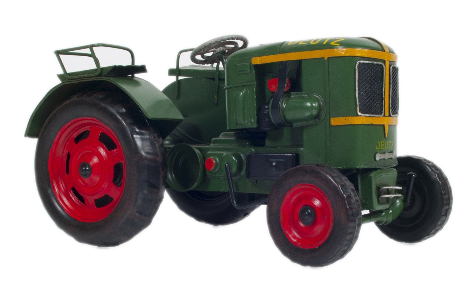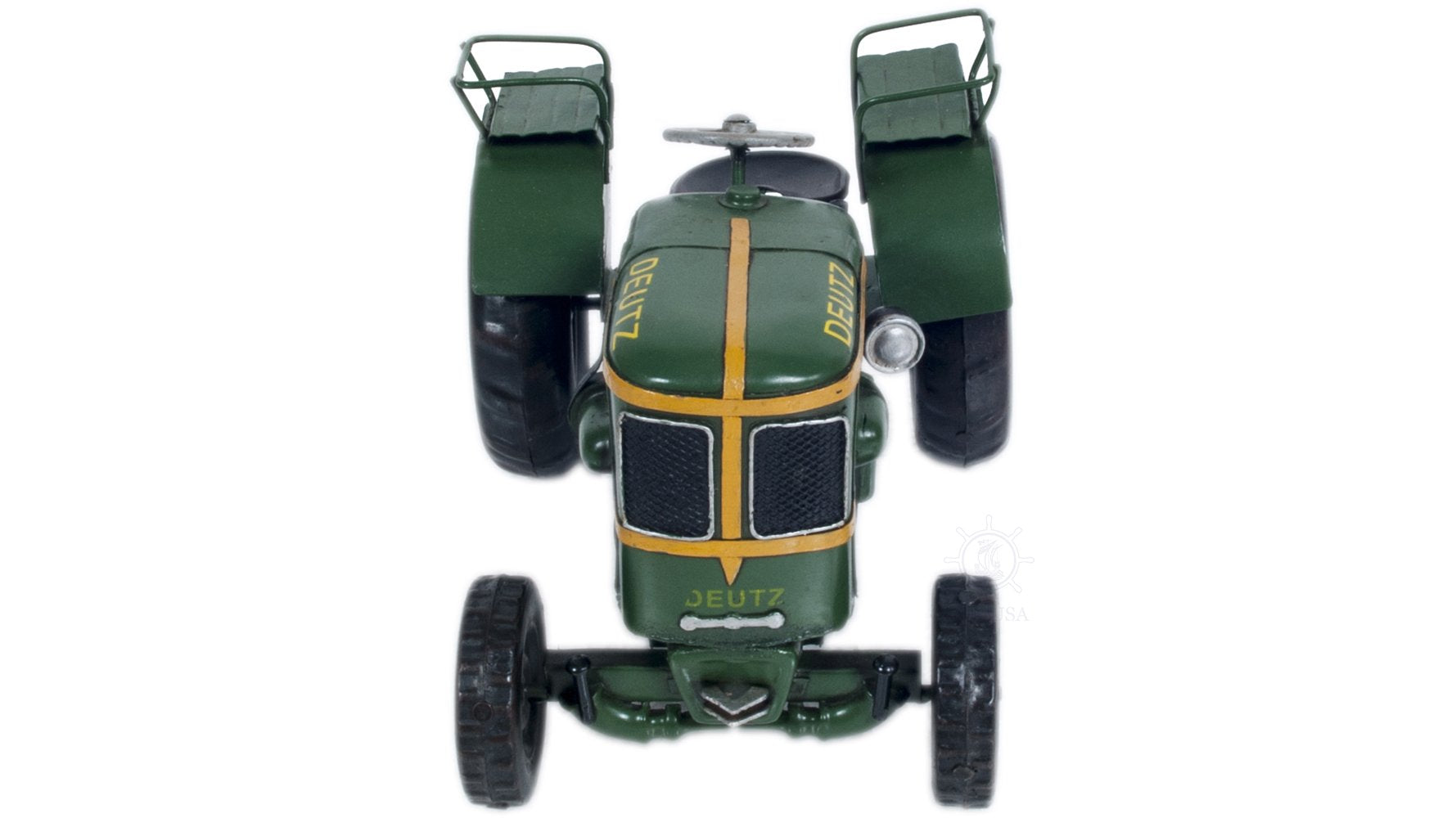 The “Universal tractor for large agricultural and forestry businesses“. This is how Deutz advertised for the Deutz F4L 514 in Cologne-Deutz from 1952 onwards. With its 5322 ccm, air-cooled four-cylinder diesel engine and output of 47.5 PS, the Deutz F4L 514 was also the most powerful model that Deutz had to offer in its range of tractors until the mid-1950s. Our Deutz tractor model is handmade out of tin. It features many intricate details such as wheels, seat, axel, engine, frame, steering wheels, headlight, and much more. Proudly display this model anywhere you like and it will surely make a conversational piece. A must-have for any collector and enthusiast!