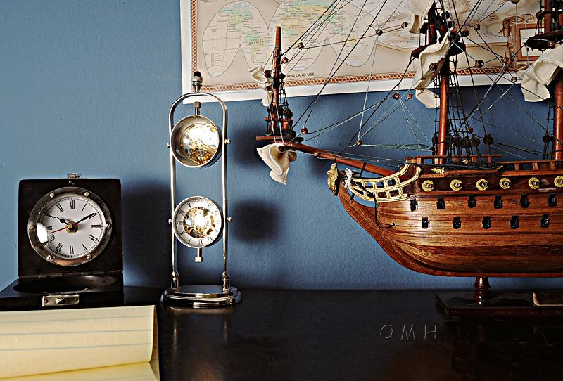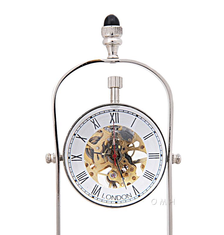 Brass two-faced clock tells you the time from New York to London. The centers of the clocks are see-though so you can see at what makes it tick. • Made out of brass with a shiny nickel finish • Runs without battery