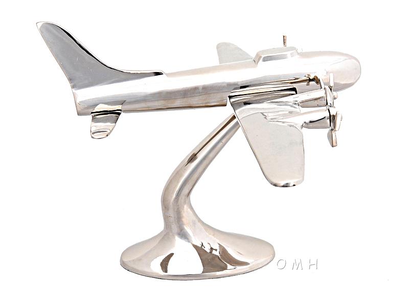Aluminum plane model emulating WWII planes. Includes front four propellers that spin upon touch. • Made out of aluminum with a shiny nickel finish • Propellers spin