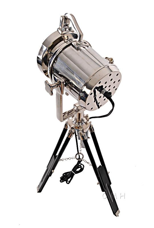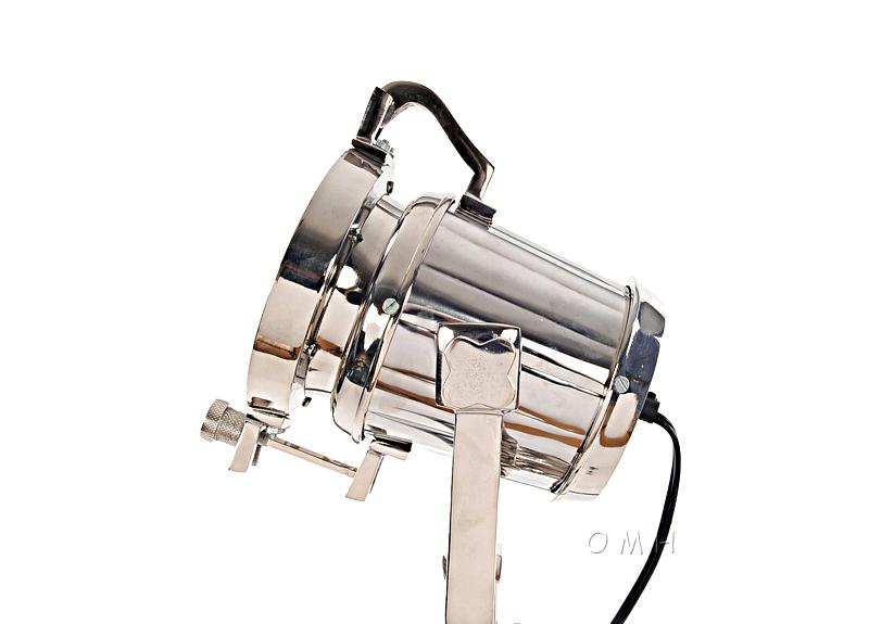 The classic floor lamp spotlights your favorite accents in your office or living room. It pays homage to vintage nautical décor while staying true to its modern appeal. • Spotlight made out of aluminum with a shiny nickel finish • Stand made out of wood (18" tall • Stand is 18" tall • 110 V/ 25W (bulb not included) • On/off switch on wire • Two-prong American plug