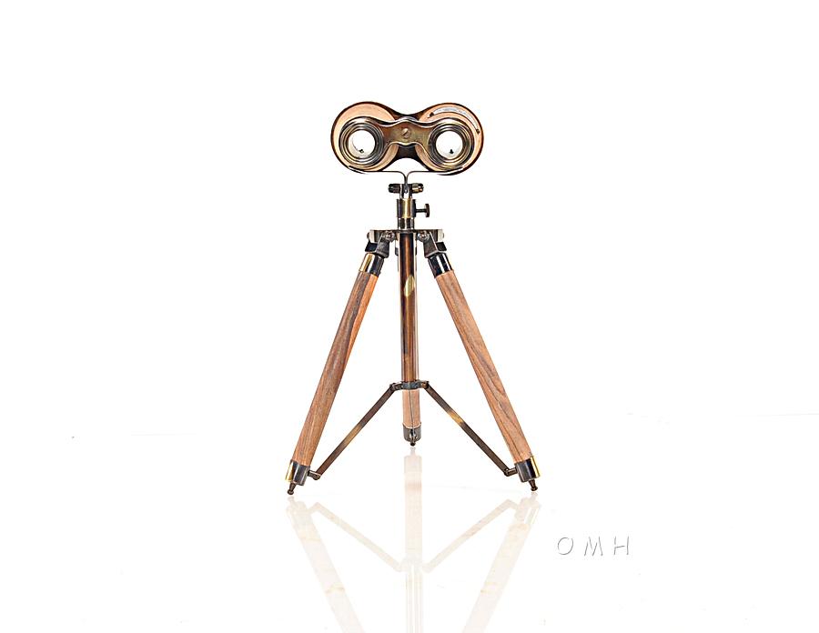 Based on a 19th century design, these Victorian binoculars were the next big invention in eyewear after the single lens telescope. The tripod stand allowed for a hands-free experience, allowing users to do more while using the binoculars. A pair of these on your desk immediately adds a level of sophistication and elegance. • Made out of wood and brass with a two-toned bright annealed finish