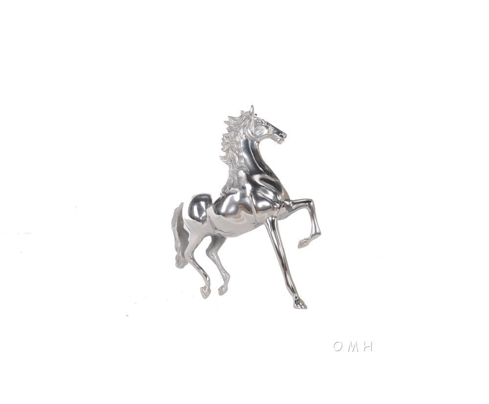 The horse symbolizes personal drive, passion, and appetite for freedom. Among all the animals, it is one that shows a strong motivation that carries one through life. This beautiful and majestic horse is made of 100% hand-cast in solid aluminum and topped with a nickel-plated finish. The horse mane and tail are hand-brushed carefully to give a realistic look. The horse body is hand polished to a high luster to make a powerfully and dazzling décor piece in your home or office.