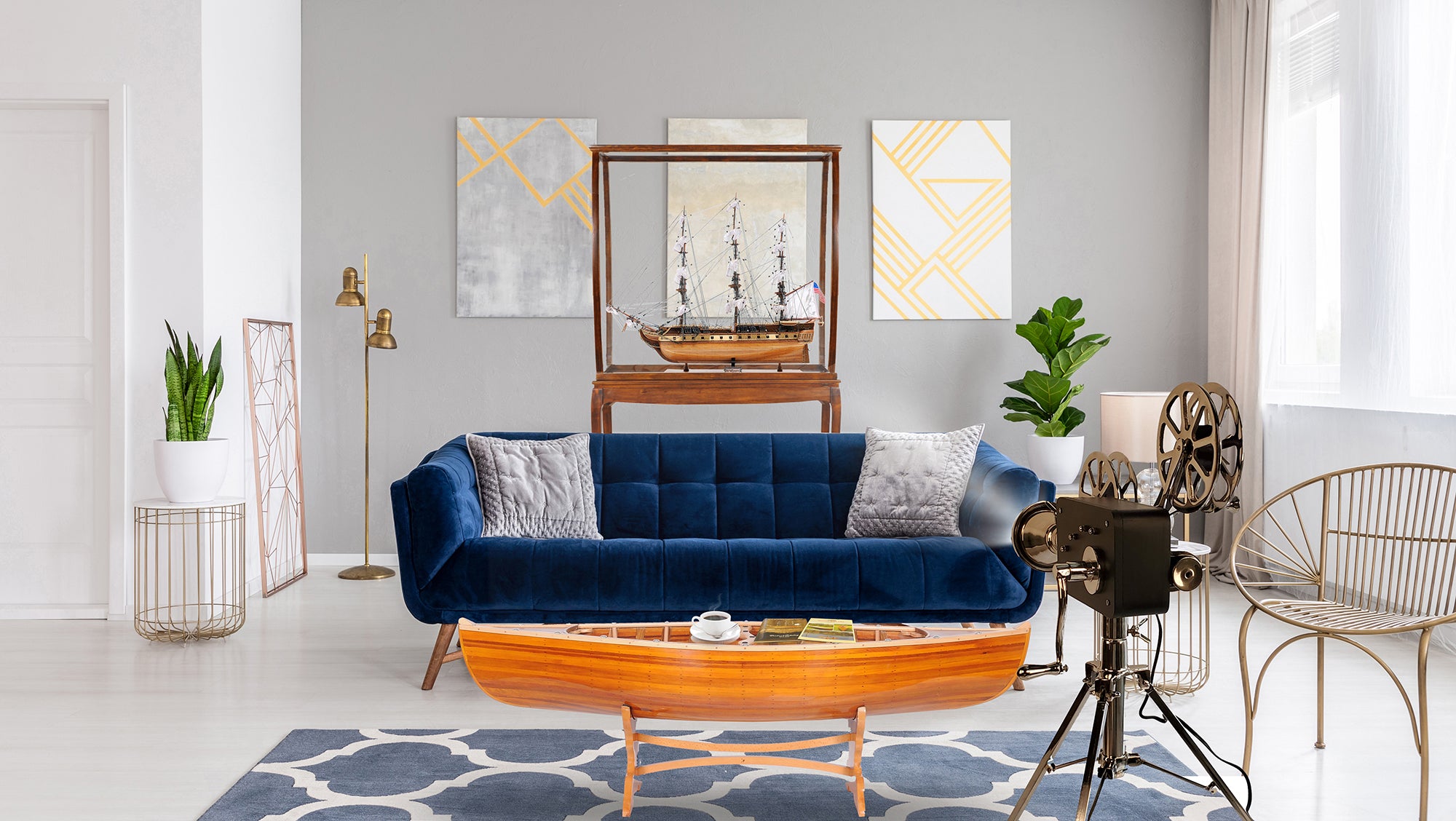 A movie projector is an optomechanical device for displaying motion picture film by projecting it onto a screen. Most of the optical and mechanical elements, except for the illumination and sound devices, are present in movie cameras. Our display movie projector has a functional light at the projector lens which acts as a lamp. It is handmade out of high-quality aluminum and wood. It features many intricate details such as wood case, two-reel system, lens, inching wheel, intermittent sprocket, focusing knob, and a stand. Proudly display this model anywhere you like and it will surely make a conversational piece. A must-have for the collector and enthusiast! Material: Aluminum Type of bulb base: E12 Maxed Watts: 75W Max height: 36 inches The light bulb is not included and sold separately.