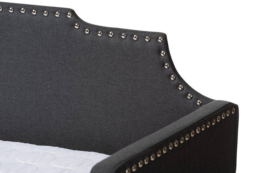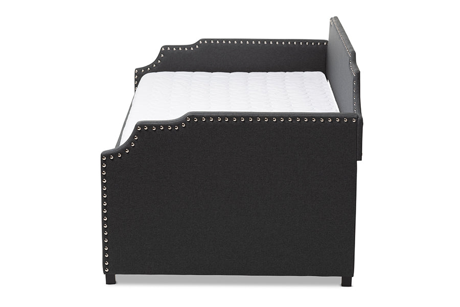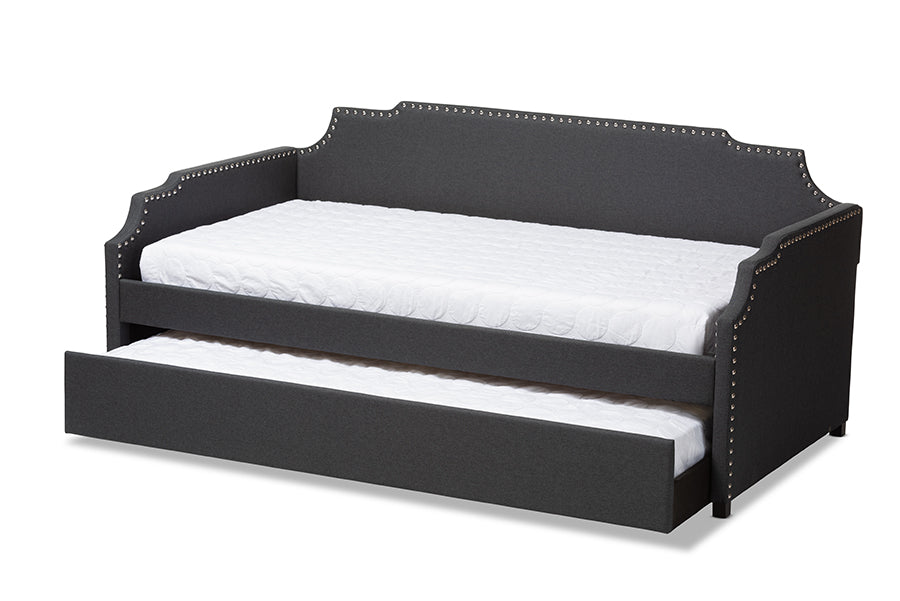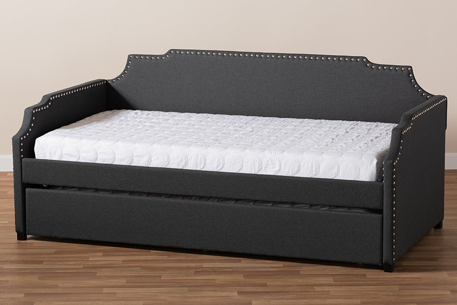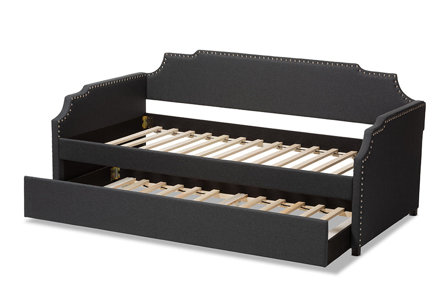 Baxton Studio Ally Modern and Contemporary Charcoal Fabric Upholstered Twin Size Sofa Daybed with Roll Out Trundle Guest Bed