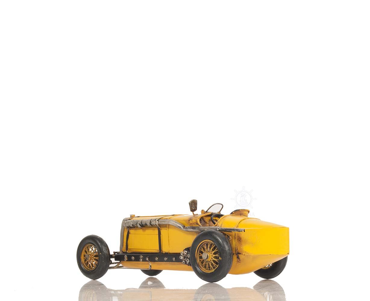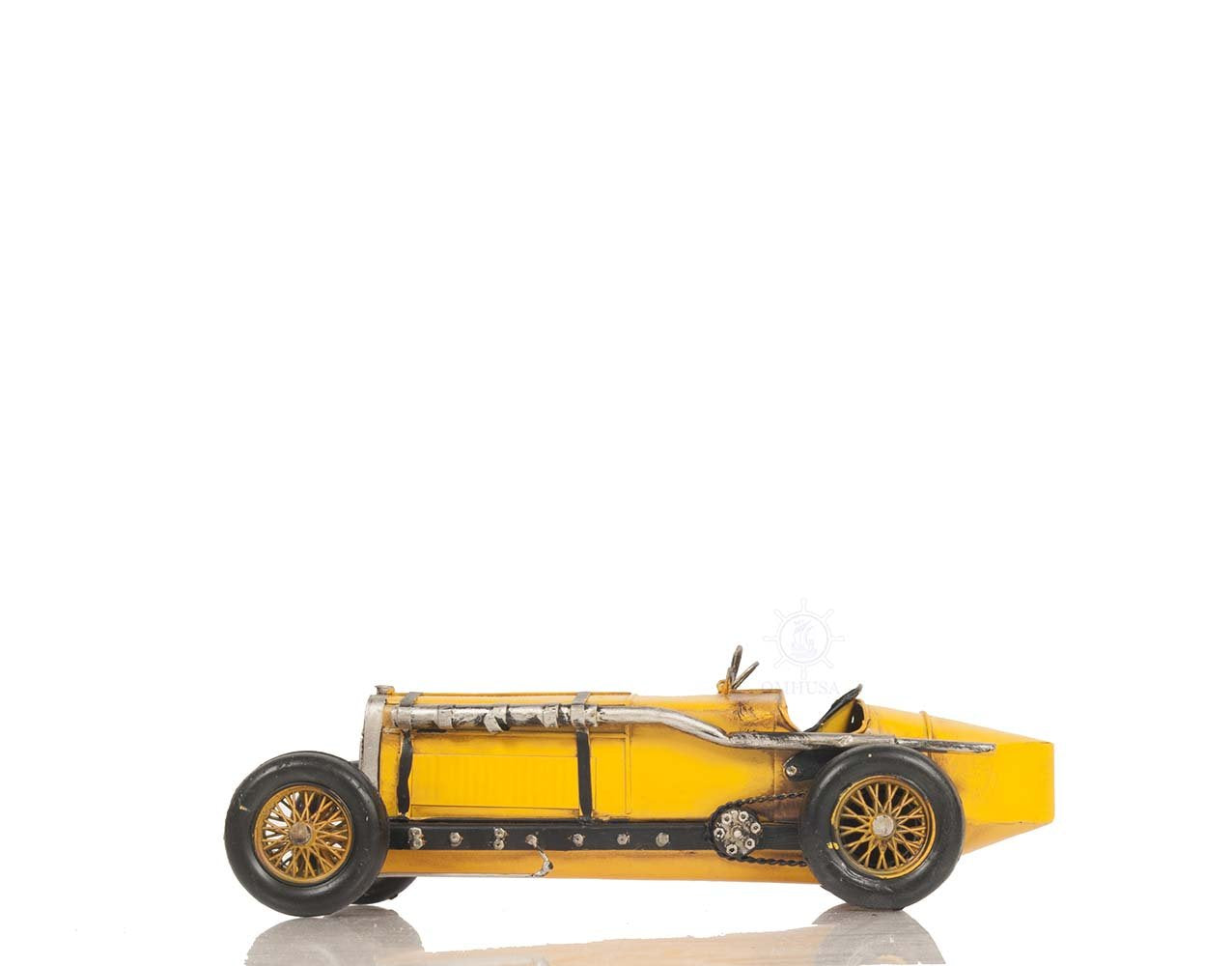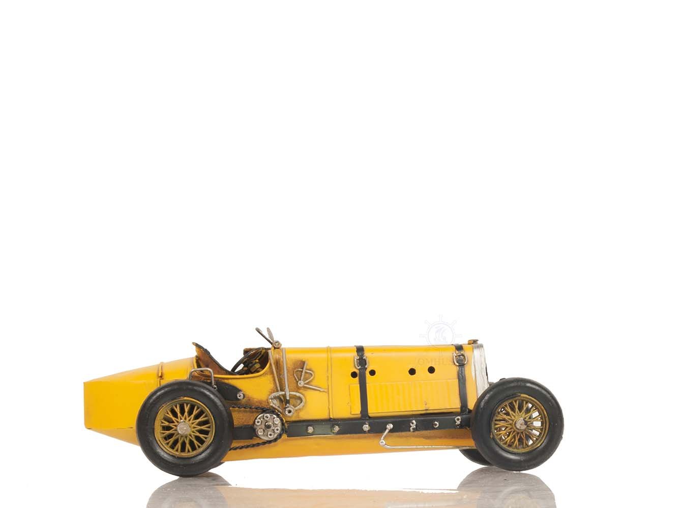 The P2 was introduced by Alfa Romeo for the Circuit of Cremona in northern Italy in 1924, where Antonio Ascari won at over 158 km/h (98 mph), and then went on to win the speed trial at 195 km/h (121 mph). The car was the first creation of Alfa’s new designer Vittorio Jano who had been recruited from Fiat by Enzo Ferrari when Nicola Romeo scrapped the P1 after its poor performance in the 1923 Monza Grand Prix against Fiat. The P2 was powered by Alfa’s first straight-8 cylinder supercharged engine with 2 carburetors placed after the compressor. Only 2 of the 6 original models survive, and they can be seen in the Alfa Romeo Museum in Arese and the Turin Automobile Museum. Our model is handmade from tin and painted in yellow color. It features many intricate details such as turnable wheels & tires, exhaust system, front wireless radiator, black painted steering wheel, and seat. It's a great model for any office decoration or passionate car collectors. Alfa Romeo is a registered trademark of FCA Group Marketing S.p.A