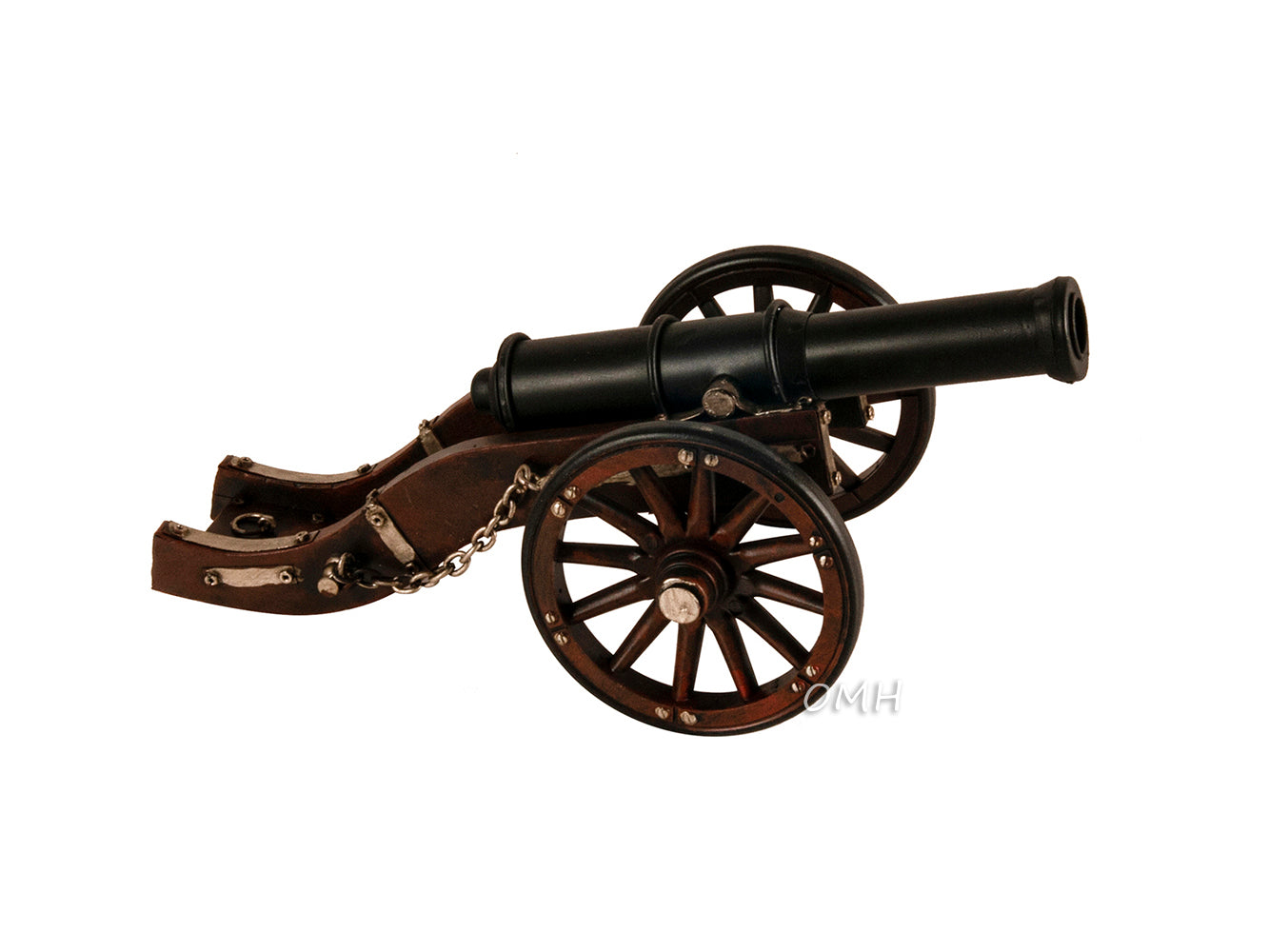 The Louis XIV Cannon was a consummate weapon of war developed in the 18th Century and used through the Revolutionary War. This well-constructed model harnesses the age-old power of the King’s artillery in miniature at 11 x 5.5 x 3 inches. Handmade from metal, with the appearance of blackened iron on the barrel and the rim of the wheels, its detail is fine and accurate to the original. It emanates grandeur, and is ideal for display in an office or home study.
