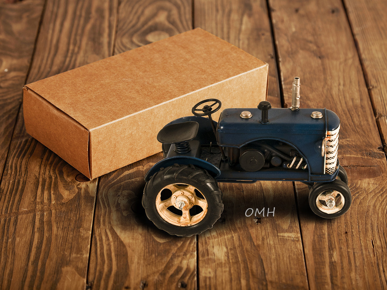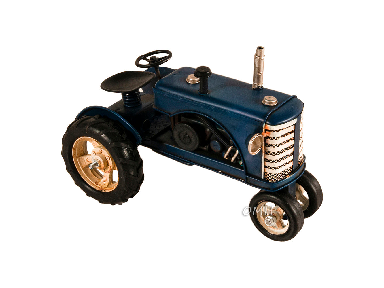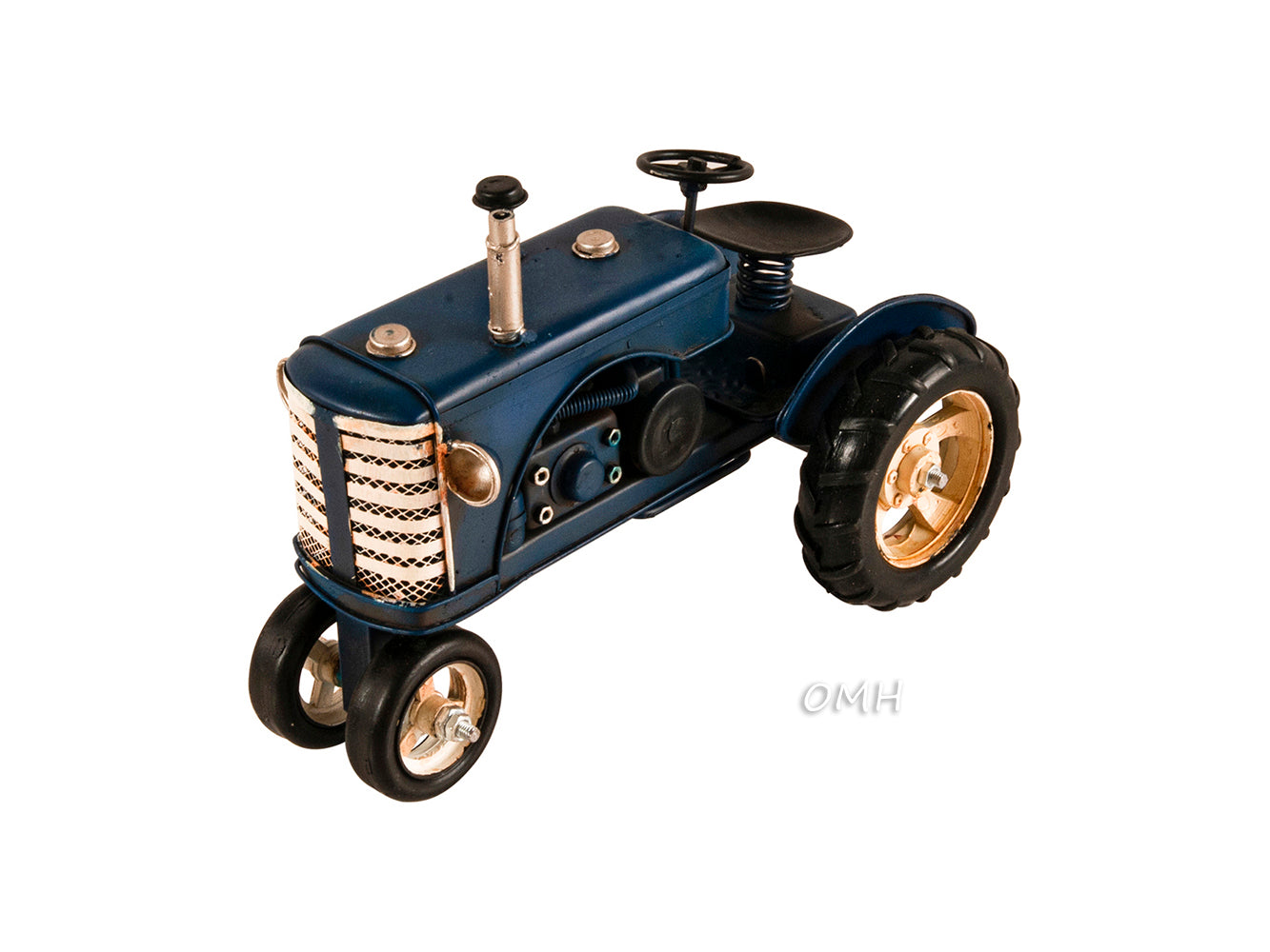 A classic icon of life out on the farm, the tractor is a powerful and versatile engineering vehicle. From plowing to planting, towing to tilling, tractors do it all. With this delightfully dapper model of a 1956 Massey Harris 333 tractor, you can pitch in and live out your rustic fantasy in style. Our miniature tractor is handmade out of metal and painted in royal blue and gold. It features many intricate details including rolling wheels, seat, axles, shaft, frame, steering wheel, chimney, radiator, and more. Perfectly sized for the desk or mantel at 9 x 6 x 7 inches, it is ideal for any collector or enthusiast.