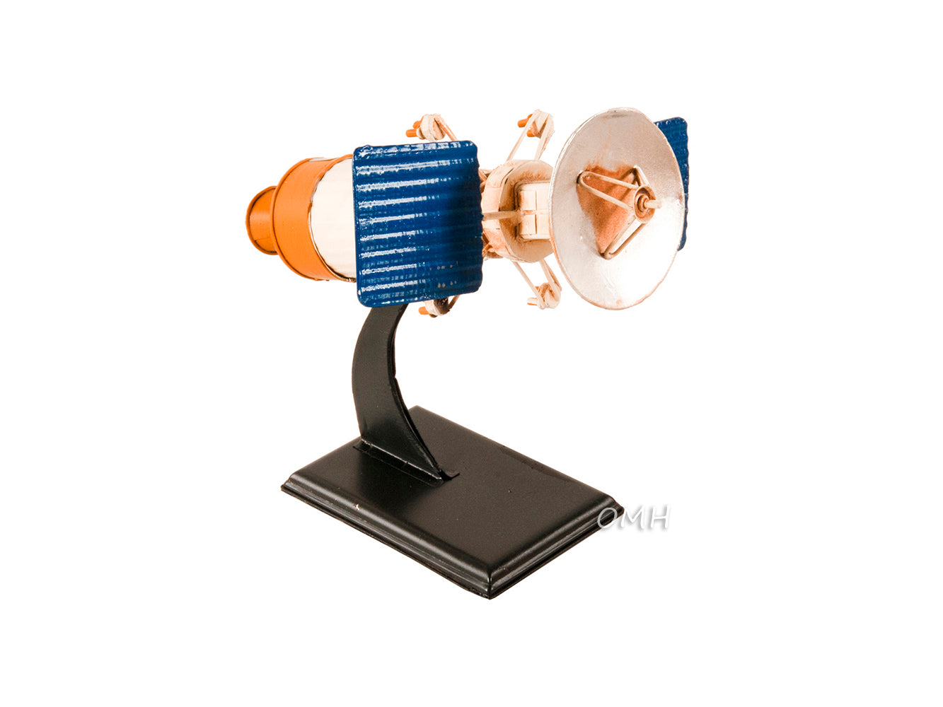 Launched May 4th, 1989, the Magellan Spacecraft was a shining star in the history of space exploration. Magellan was the first ever planetary spacecraft to be launched by a space shuttle, and it delved deep into the mysteries of Venus over its five years in space. This handcrafted model captures the beauty of Magellan in miniature at 8.5 x 7 x 8 inches. It features a thruster module, rocket booster, antennae, solar panels, and more components. Shades of cerulean blue, cream, gold and silver are accurate to the original.