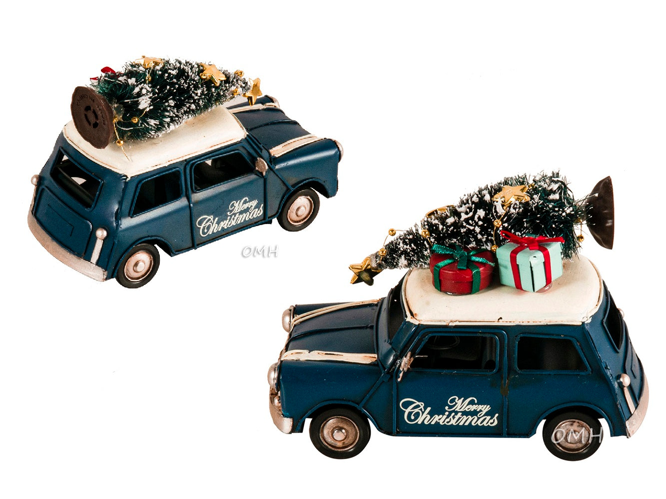 Handmade 1960s Mini Cooper Christmas Car Model Set of 2
