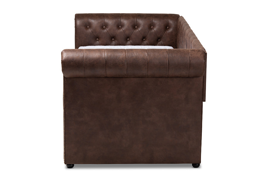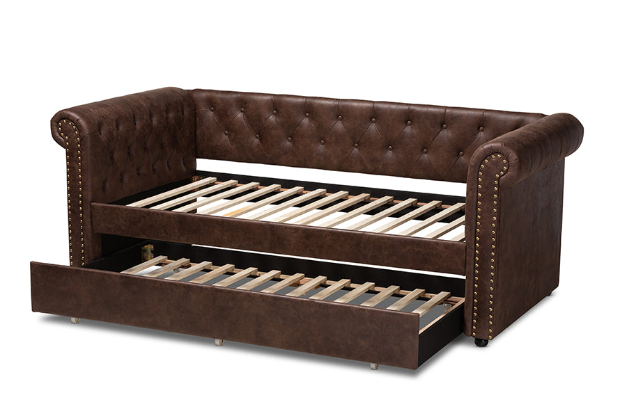 Baxton Studio Mabelle Modern and Contemporary Brown Faux Leather Upholstered Daybed with Trundle