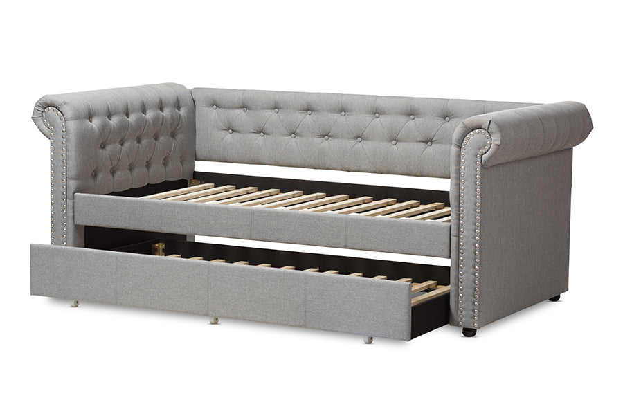 Baxton Studio Mabelle Modern and Contemporary Grey Fabric Trundle Daybed
