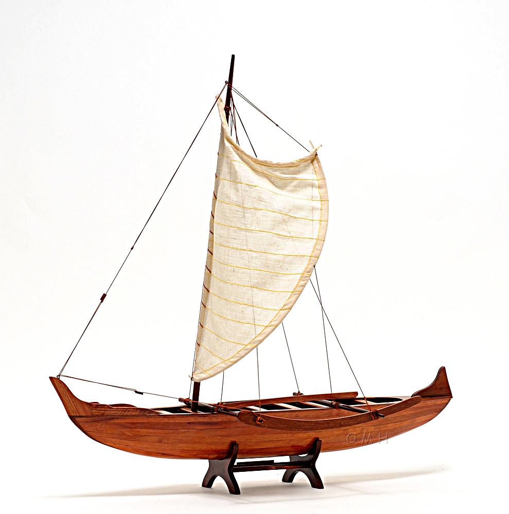 In the early 1900’s outrigger canoe racing became a popular sport in Hawaii. Have this beautiful Hawaiian canoe model display in your own home or office. Master craftsmen handcraft these highly detailed wood models from scratch using historical photographs, drawings and original plan. They are built to scale with high-grade wood such as: western red cedar, rosewood, and mahogany. They are 100% hand built individually using plank-on-frame construction method and are similar to the building of actual ships. Each model requires many hours to finish and must go through a demanding quality control process before leaving the workshop. This model was constructed by putting together many strips of wood. It rests on a wooden stand with a brass nameplate. It will be a perfect gift for home or office decorator, boat enthusiast, or passionate collector. Mast and sails are folded down for easy shipping.