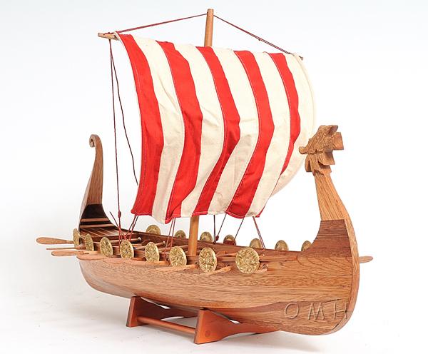 This model is simple, but stunning! It is a replica of the Drakkar viking long boat, a classic boat used by the Viking between 7th & 10th century. It looks and feels like a miniature real boat. This 25-inch model is handcrafted with the highest quality woods from scratch by master artisans using “plank on frame” construction, just like real boats. Each model takes more than 50 hours to construct and undergoes a demanding quality-control process. Among the details of this boat model: lines of shields along 2 sides of boats, many wooden oars, colorful viking sail, brass nameplate and stand.