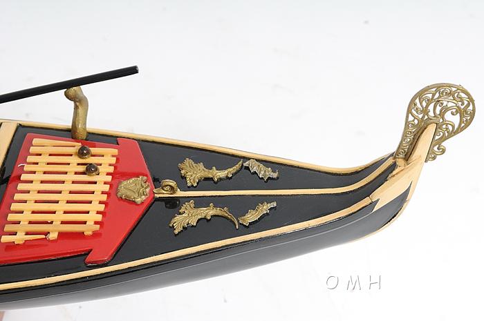 The Venetian gondolas around the 17th century were commonly used for transportation around the Grand Canal in Venice. Today, they are used as an iconic boat for mostly tourism. It is available as a FULLY ASSEMBLED model ready to be proudly display as a piece of history. Master craftsmen handcraft these highly detailed wood models from scratch using historical photographs, drawings and original plan. They are built to scale with high-grade wood such as: western red cedar, rosewood, and mahogany. They are 100% hand built individually using plank-on-frame construction method and are similar to the building of actual ships. Each model requires many hours to finish and must go through a demanding quality control process before leaving the workshop. The hull is beautifully painted in black and then varnished in several layers. The deck is decorated with several golden sculpture. Seating are and stern deck are painted in red. It has a gold plated ornament at the bow. The model comes with one black painted oar. A hand stitched pillow casing is tied up against the cockpit on the opposite of the red wooden seat. There is a wooden platform for the gondolier to stand on. This model also come with a wood base with a brass nameplate. It’ll make a perfect gift for home or office decorator, boat enthusiast, or passionate collector.