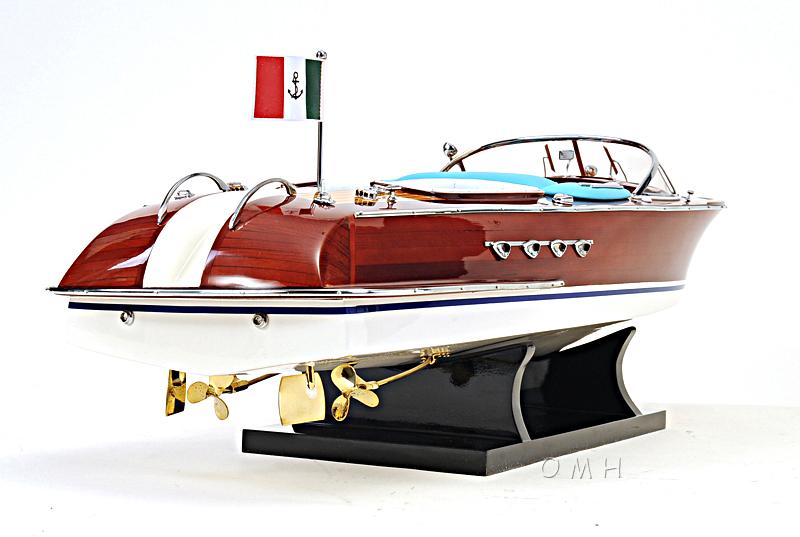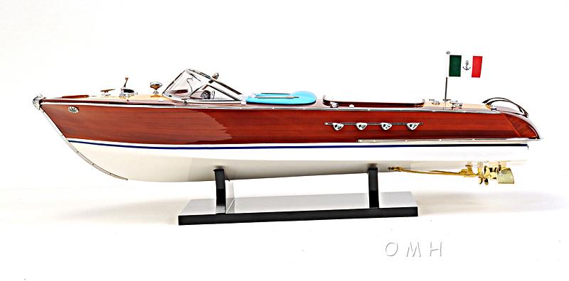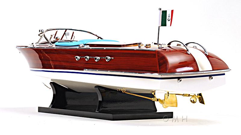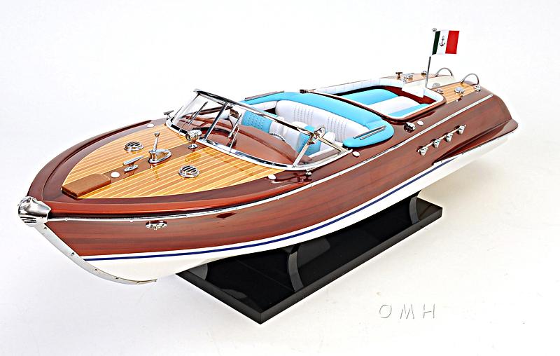 This is a beautiful 100% handcrafted mahogany Riva Aquarama model. Painted in the true color of the boat. It take hundreds of hours to build by skillful and creative master craftsmen. Contains hundreds of beautiful details such as shiny chrome and brass fittings and very detailed dashboard and leather seats. Layers of vanishes are applied; the hull is then smoothly sanded between coats to create a mirror effect. This model was built according to scale through original plans, pictures and drawings. Extensive research thru original plans and pictures makes our model look authentic. Each model goes thru a demanding quality control process before leaving our workshop. Rested in a neat wood stand. Model shipped fully assembled. This item is just as luxurious as the real boat.