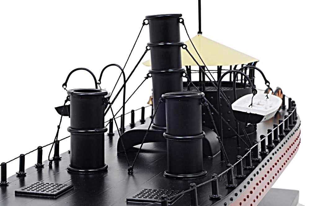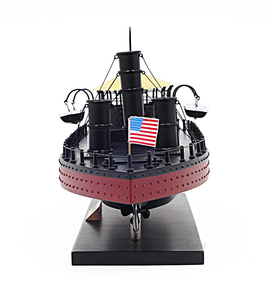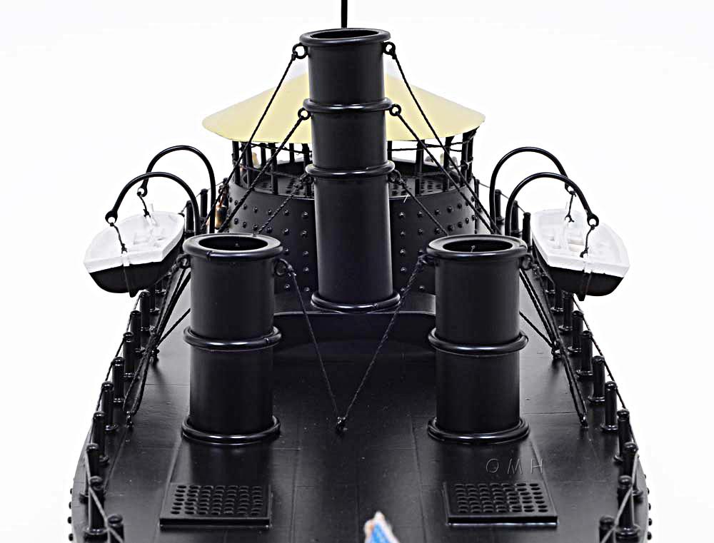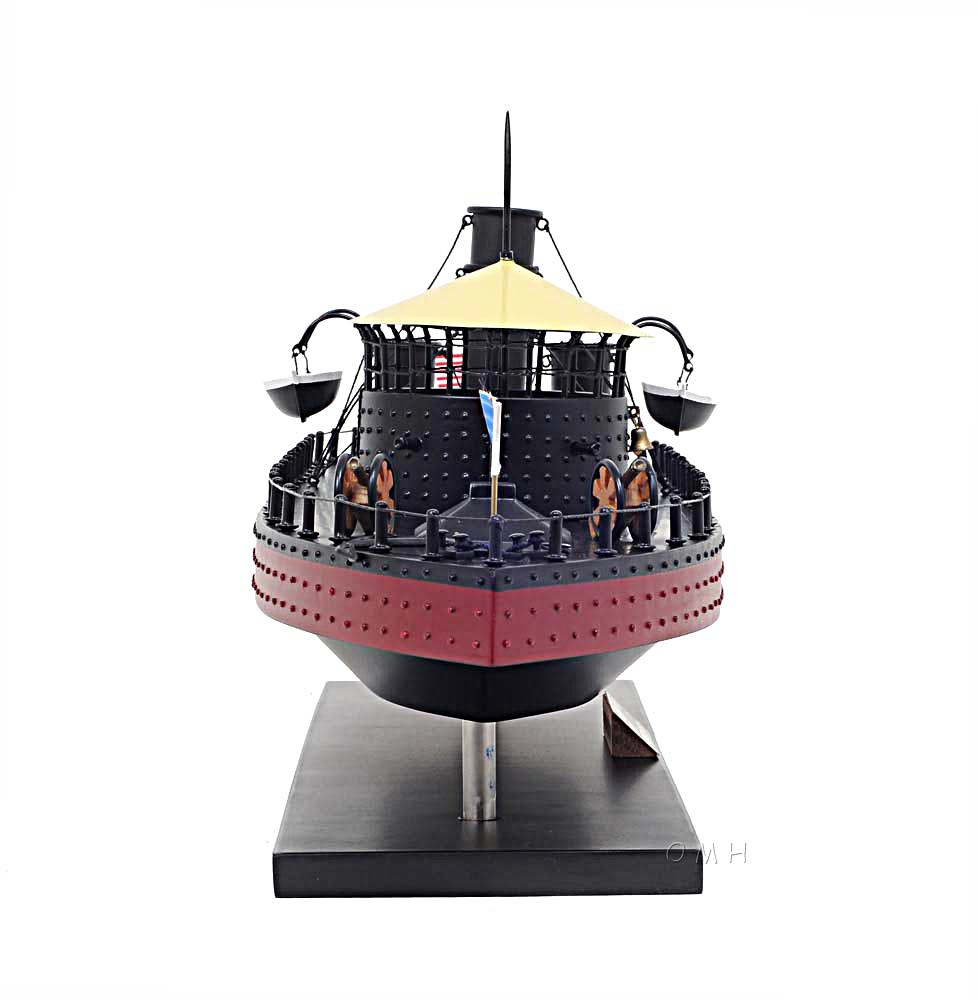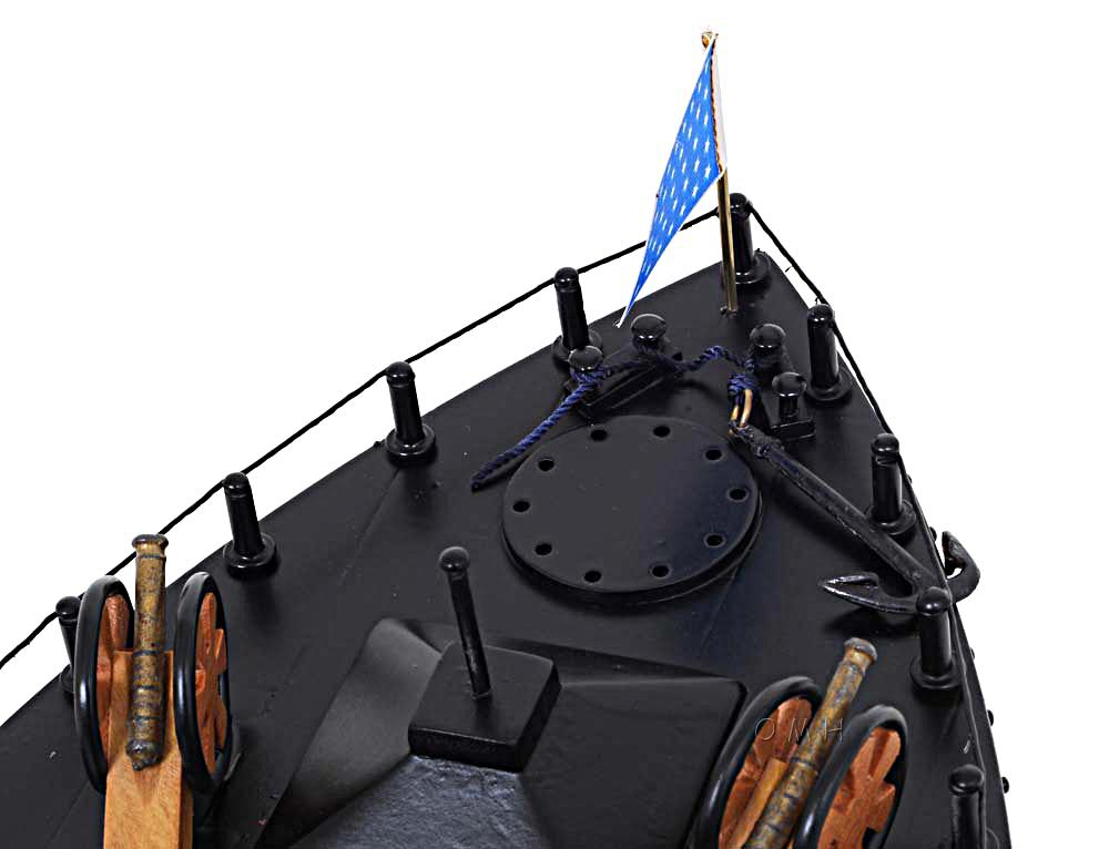 The U.S.S. Monitor, an ironclad warship, was built in 1862 during the American Civil War by the United States Navy in response to Virginia seceding from the Union. It fought against the C.S.S. Virginia in the Battle of Hampton Roads. It is available as a FULLY ASSEMBLED model ready to be proudly displayed as a piece of history. Master craftsmen handcraft these highly detailed wood models from scratch using historical photographs, drawings, and original plan. They are built to scale with high-grade materials such as wood, polyester resin, metal, and MDF. They are 100% hand built individually using plank-on-frame construction method and are similar to the building of actual ships. Each model requires hundreds of hours to finish and must go through a demanding quality control process before leaving the workshop. The U.S.S. Monitor exquisite details include metal cannons, wooden small boats, pilothouse, skylights, US flags, Union Jack flag, smokestacks, and air intake stacks. There are black railings all around the ship and on the turret. The rivets on all armor plating make the boat look really cool. You can also see metal stanchions that support the turret roof panel. The hull is painted maroon and the upper deck is painted black to replicate the original warship. The model is secured tightly on a black solid wood base with a brass nameplate with the words “U.S.S. Monitor.” It’ll make a perfect gift for home or office decorator, boat enthusiast, or passionate collector.
