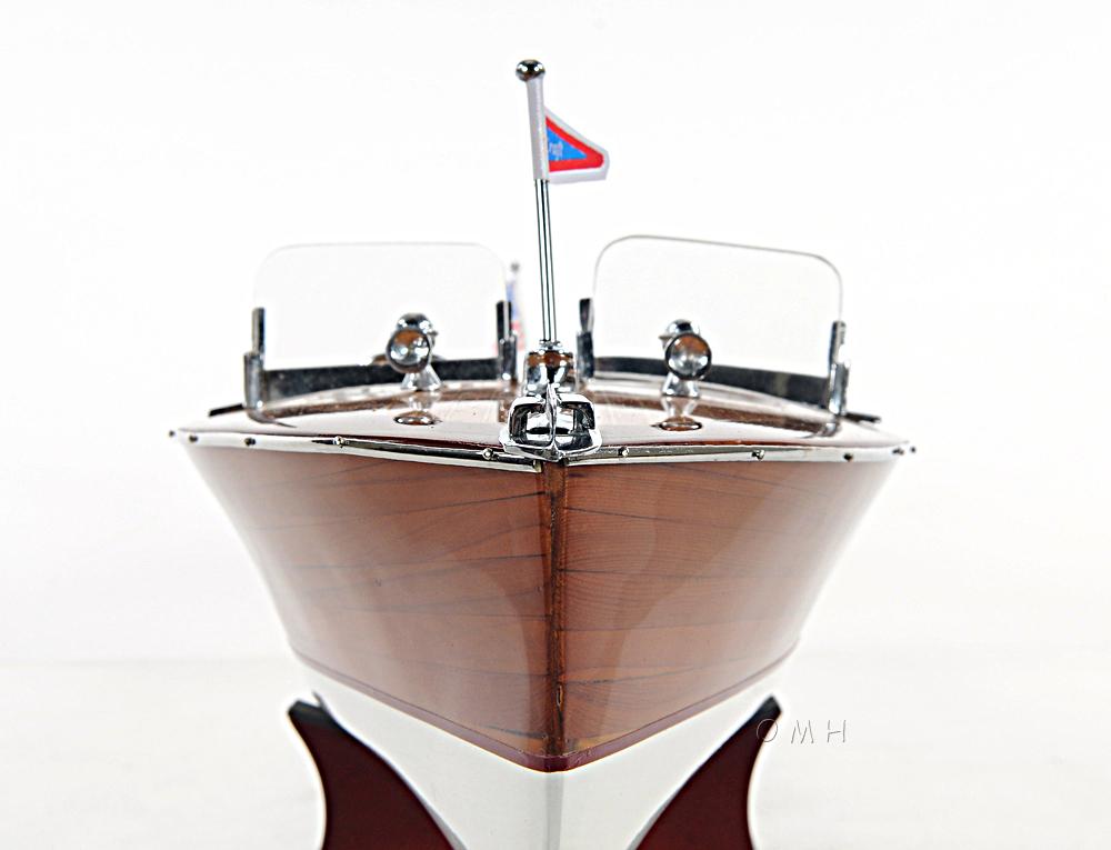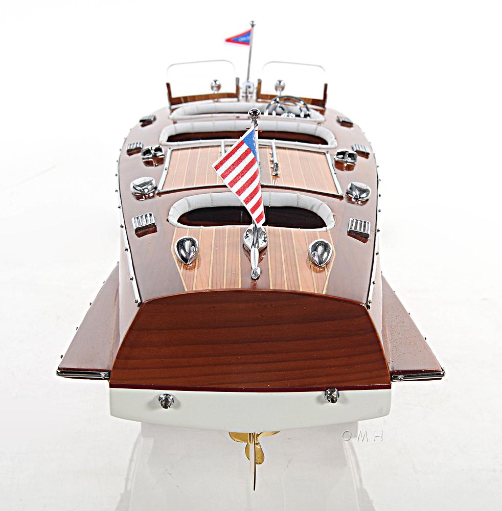 Founded by Christopher Columbus Smith around the 1920s, Chris Craft Co. still stands as a leader in producing high-powered, luxurious leisure boats. The quality of his models was tested through competitive speedboat racing, and the Christ Craft superiority rang true as the boats consistently proved victorious. During the era of prohibition, speedboat racing was embraced by gamblers, industrialists, and mobsters. These men readily financed the high-powered designs of craftsman such as Christopher Columbus Smith, John L. Hacker, and George Crouch. As Smith’s boats started to receive awards such as the coveted Gold Cup of the American Power Boat Association, the Chris Craft name started to become a star among nautical enthusiasts. He continued to thrive in the speedboat competitions and his string of victories further accelerated the explosion of his company’s success.