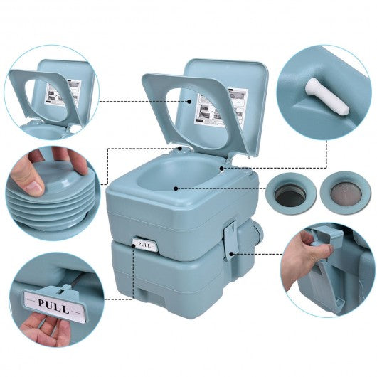 5 Gallon 20 L Outdoor / Indoor Potty Commode Portable Flush Toilet-Green