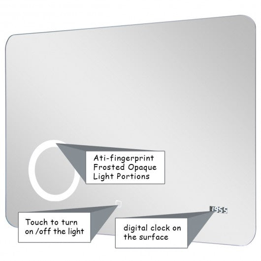 LED Touch Button Wall-Mounted Makeup Mirror w/ Clock