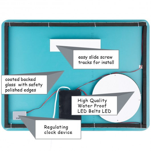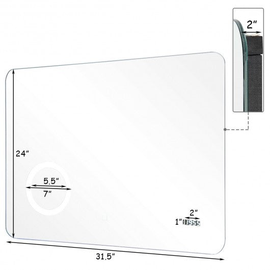 Specification: Color of LED: White Material: Glass Weight: 16.5 lbs Overall dimension: 31.5" x 24" x 1.2"(L x H x D) Input voltage: Ac100-240V Output voltage: Ac100-240V Frequency: 50 / 60Hz Certification: IP44 Protection rating: UL Installation: Hanging vertically Package include: 1 x LED bathroom mirror