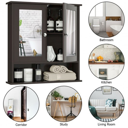 Bathroom Wall Mount Mirror Cabinet Organizer-Brown