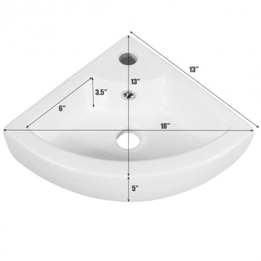 Bathroom Corner Ceramic Vessel Sink with Overflow and Faucet Hole