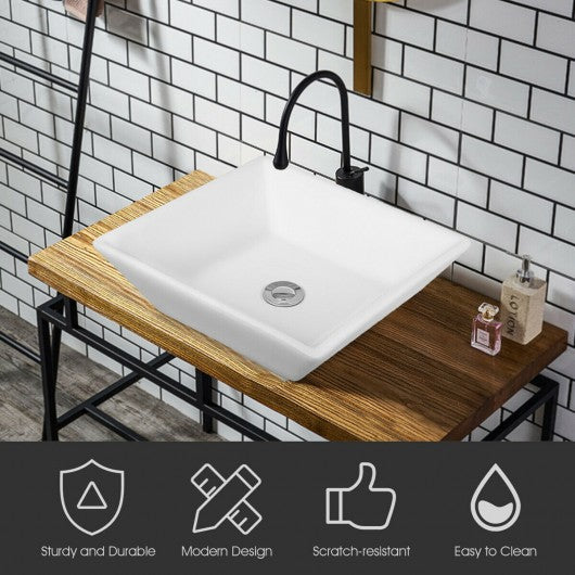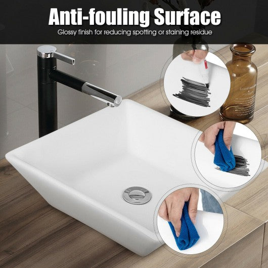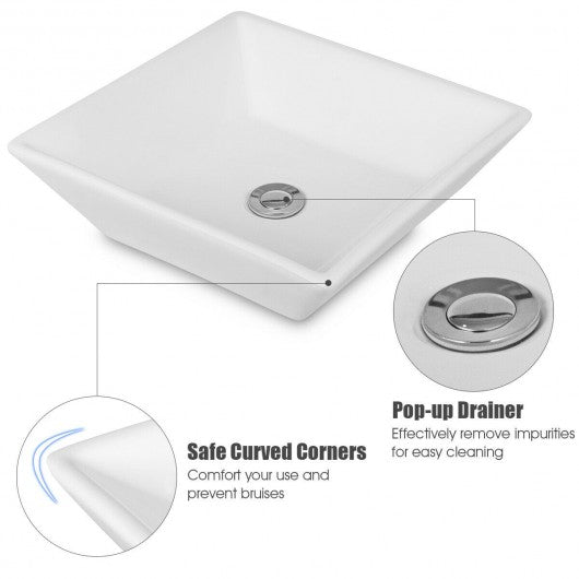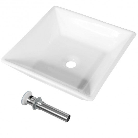 16" x 16" Square Bathroom Ceramic Vessel Sink with Pop-up Drain