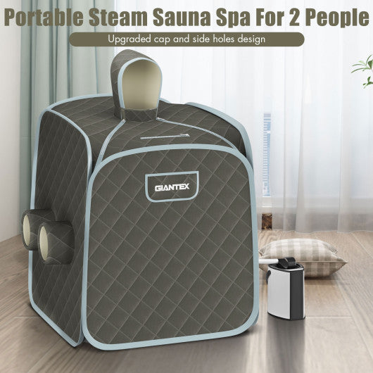 800W 2 Person Portable Steam Sauna Tent SPA with Hat Side Holes 3L Steamer-Gray