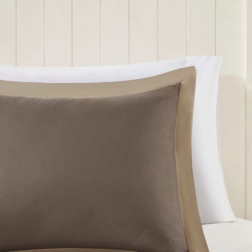 This Super Soft Larkspur Down Alternative Comforter Mini Set Will Make It Hard To Get Out Of Bed In The Morning. The Microfiber Fabrication Is Treated With A Special 3M Stain Resistant Treatment Giving You Peace Of Mind When It Comes To Stubborn Stains While The Diamond Quilting Pattern Gives This Comforter Added Dimension. Both The Comforter And Shams Are Completely Reversible With Hidden Zippers On The Sham Giving You The Choice Of Which Color You Would Like To Feature In Your Space. The Brown Side Of The Shams Features A Sand Flange To Bring Both Color Options Together.