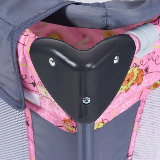 Foldable 2 Color Baby Crib Playpen Playard-Pink