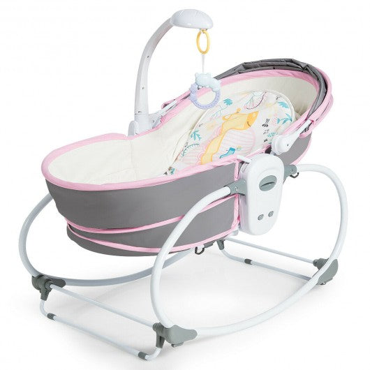 5 in 1 Portable Baby Multi-Functional Crib with Canopy Toys-Pink