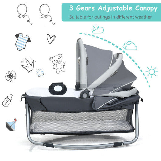 This is the baby playpens which help provide a safe and comfortable place for your babies to play or sleep. The baby play bed has many features that you can use as a cradle diaper table game center or baby fence. And this playard comforts your infant can be easily moved from room to room. There are two cute toys and a music center on the cradle that can attract children's attention and arouse their curiosity. And breathable mesh sides allow generous airflow while the low height lets you check that your child is sleeping safely and peacefully. This play yard is designed to grow with your baby from newborn to infant to toddler. Combine 4 functions of baby bassinet cradle diaper table and activity center Two wheels with brakes for moving conveniently and safely Diaper stacker help mother to change diaper easily The bag used to store the folding crib allows you to take it anywhere Breathable fabrics promote airflow to create a cooler space for baby Music box and 2 hanging toys provide unlimited fun for baby Provide a large space for infants to play after removing the cradle Hanging side pockets help store baby necessities