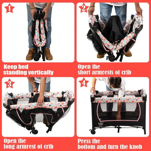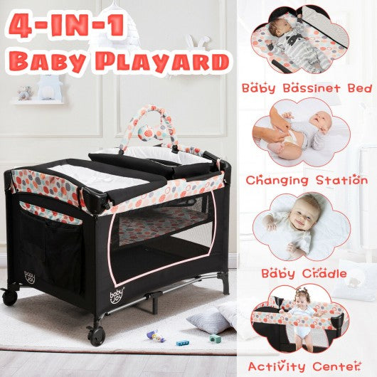 4-in-1 Convertible Portable Baby Playard with Changing Station-Pink