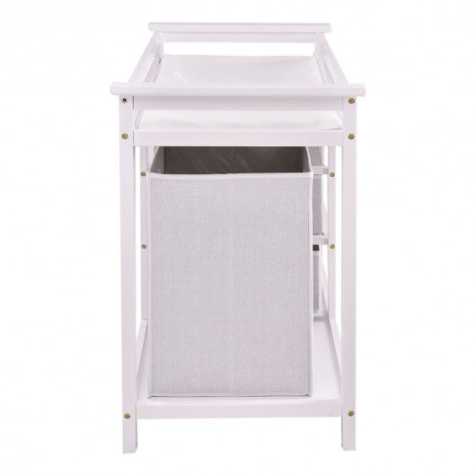 This baby changing table keeps everything tidy and concealed for a clean look in the nursery. Featuring large hamper for dirty duds the baby changing table provides ample and seperate space for storing bulk packs of diapers blankets and toys keeping all the supplies in well order. Besides there are four pull-out baskets ideal for changing supplies clothes socks shoes and toiletries. The baskets are also fully removable for using separately from the table leaving a convenient spot in the changing table for your diaper pail or storage. The hamper can be easily removed from its shelf to be carried around. Brand new and high quality Changing table with ample storage for the nursery and a removable hamper too Includes three pull out and removable baskets The hamper easily removes from its shelf to carry to your laundry room Using the hamper elsewhere in the nursery or your house leaving you a convenient spot in the changing table for your diaper pail or storage Changing pad and safety belt included Safety rails surround the changing area Wipe clean nursery; dressing; storage Illustrated assembly instructions included Non-toxic finish